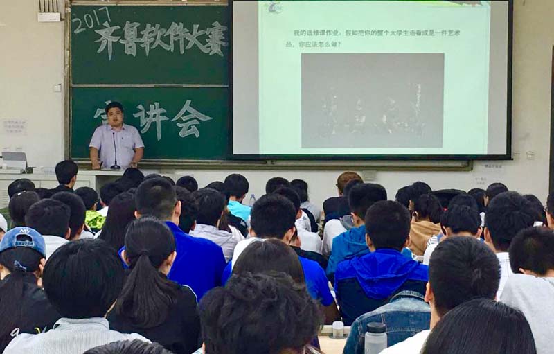 2017年5月13日第十五届山东大学生软件设计大赛巡回报告会在青岛理工大学成功举行。参加此次大会的嘉宾有大赛组委会办公室副主任尚玉新,计算机学院科技创新中心主任李兰,以及十三届齐鲁软件设计大赛获奖同学山东建筑大学霍成琳及青岛理工大学张明睿。