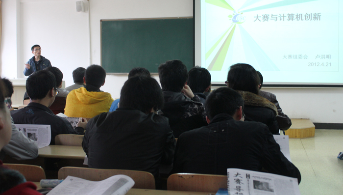 21日,报告会分别在鲁东大学、烟台大学、烟台大学文经学院举行,各学校同学均踊跃参加报告会,报告会自始至终都保持着热烈激昂的气氛,何军老师用幽默诙谐的语言给想要参赛的同学一些建议,如注重交流、关注市场需求、重视参赛作品的细节等。几位报告团的同学也介绍了他们作品并谈了参赛经验和心得,烟台大学的胡佳男同学给学弟学妹起到了很好的榜样作用。其中烟台大学的同学在提问环节异常踊跃,从各个方面向报告团成员提出了自己的问题。烟台大学的姜老师向全体参赛同学承诺,一定全心全意为同学服务,争取让烟台大学在第十届软件大赛中获得更加优秀的成绩。