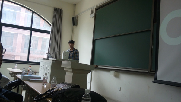 2014年5月17日在青岛理工大学进行第十二届齐鲁软件大赛的巡回演讲报告会,参加此次巡回演讲报告会的有组委会尚玉新老师,大赛命题老师山东建筑大学杨磊老师和青岛科技大学马兴录老师,往届大赛一等奖获学生代表唐子杰、王文珑、裴金亮同学,参加报告会的还有青岛理工大学李兰教授和300多名学生,经过大家认真的准备后,报告会在早上9点在教学楼207教室举行,报告会由尚老师主持。