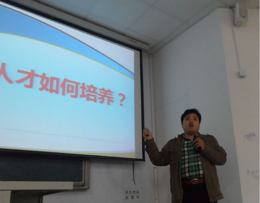 马兴录老师用“登山”的例子给同学们讲解参加大赛的过程,让同学们受益匪浅,杨磊老师向大家讲述了软件大赛的题目和一些需要注意的事项。在演讲的过程中尚老师还和大家做了两个互动游戏,并且通过互动游戏告诉大家:“做事要积极主动,机会更加需要主动争取”。